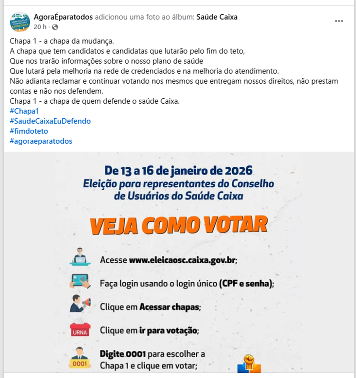 Em 16 de janeiro, data final para eleição de representantes ao Conselho de Usuários do Saúde Caixa.